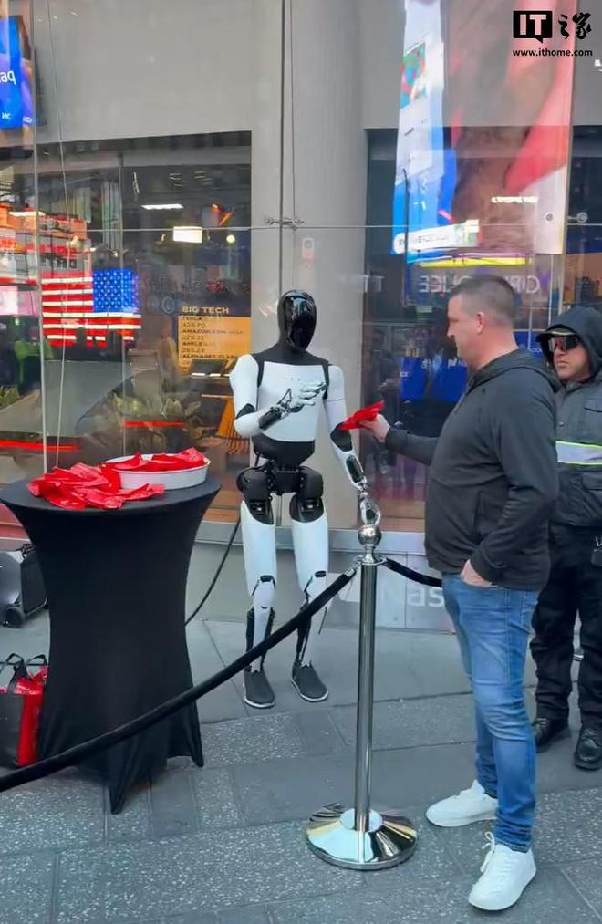 特斯拉人形机器人亮相纽约时代广场,为路人送